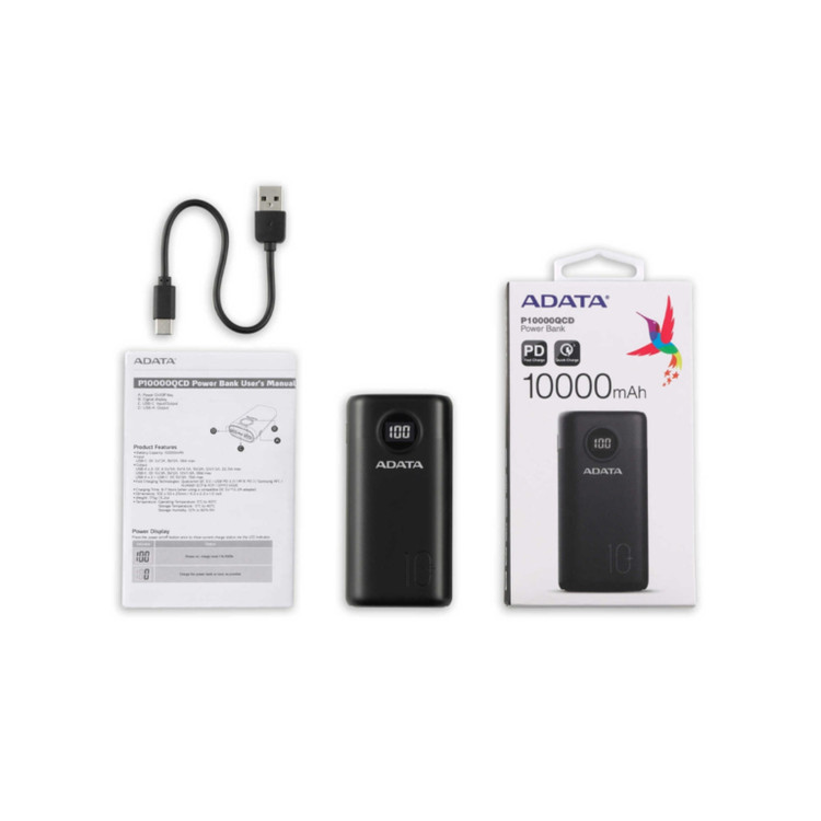 شارژر همراه فست شارژ ای دیتا مدل P10000QCD ظرفیت ۱۰۰۰۰ میلی آمپر ساعت