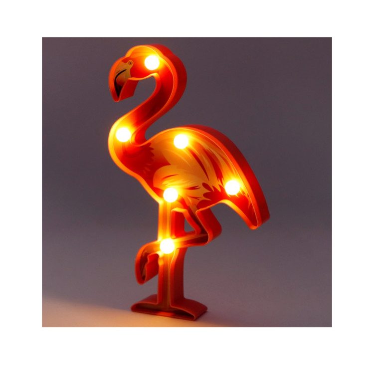 تامین انرژی توسط دو عدد باتری ۱٫۵ ولت سایز AA، رنگ نور آفتابی دارای کلید روشن و خاموش، امکان نصب بر روی دیوار با وجود دو حفره مخصوص پیچ یا میخ ساخته شده از جنس پلاستیک با کیفیت، طراحی شده به صورت فانتزی و در طرح فلامینگو