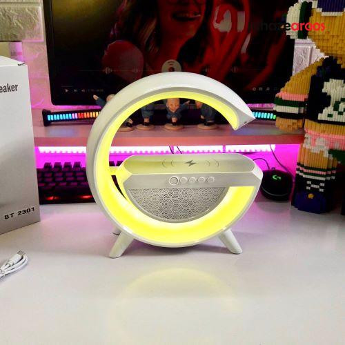 اسپیکر بلوتوثی دارای قایبلت شارژ وایرلس ، دارای چراغ RGB به عنوان رقص نور و چند رنگ چراغ به عنوان چراغ خواب ، دارای رادیو ، قابلیت پخش موزیک از طریق USB و میکرو اس دی ، دارای ورودی LOX