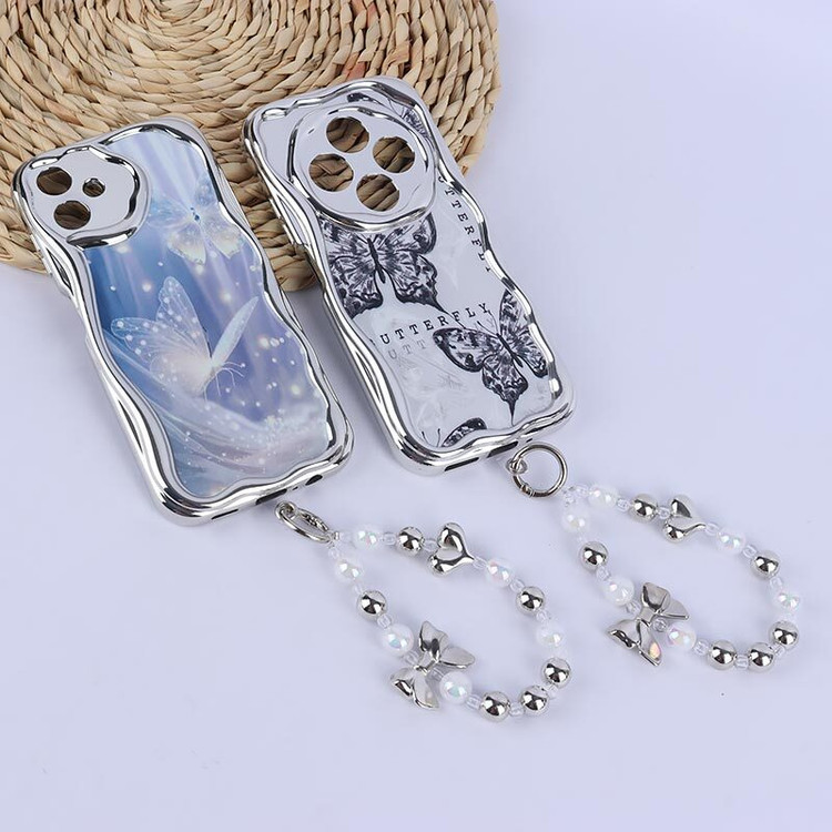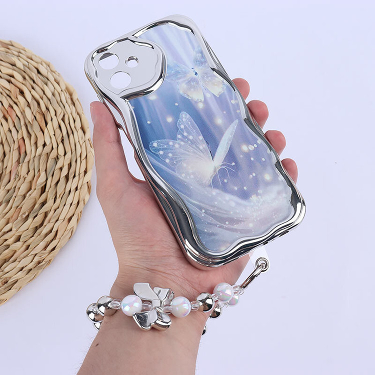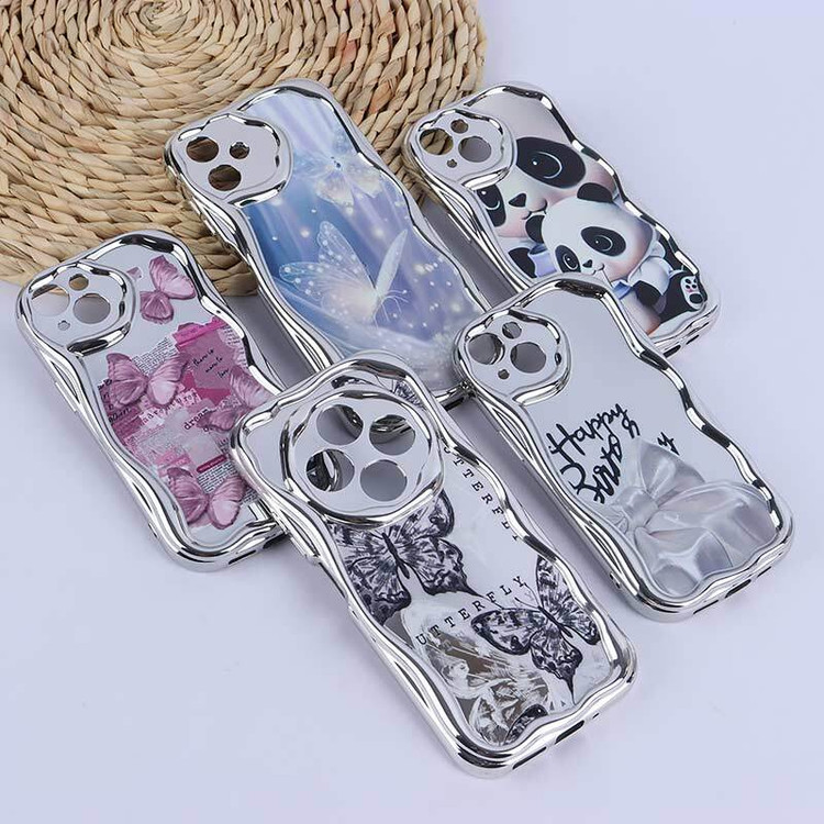 قاب آینه ای طرح دار دور براق محافظ لنزدار با بند مچی ایفون ۱۵