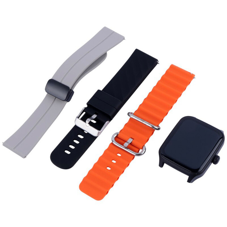 بدنه از جنس فلز و پلاستیک مقاوم در برابر آسیب، اقلام همراه شامل 3 عدد بند سیلیکونی و کابل شارژ مغناطیسی