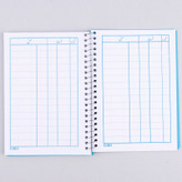 شامل 70 برگ کاغذ بصورت خط دار و صحافی شده به شکل عمودی و سیمی